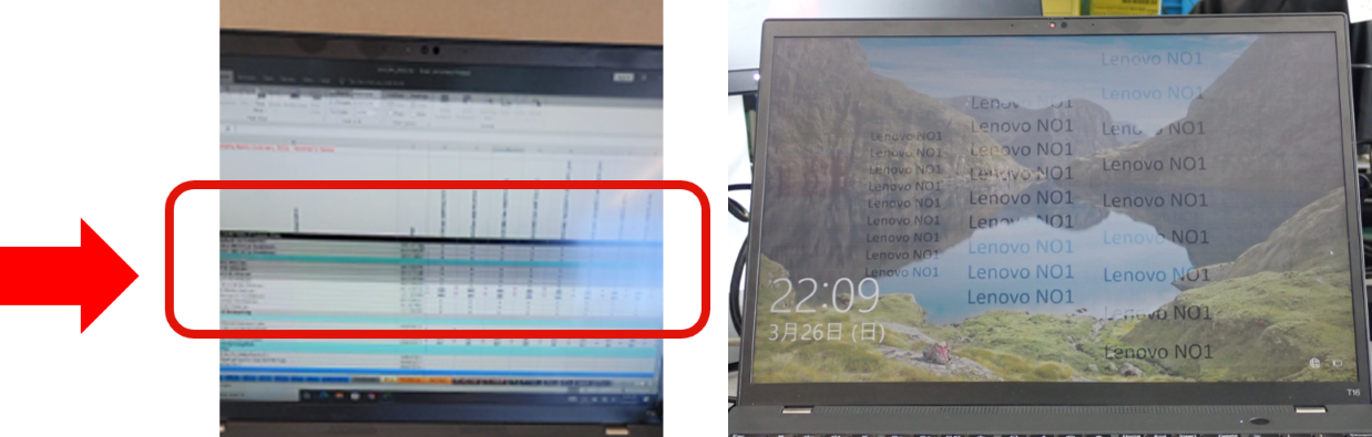 Abnormal display (Example A) or Image sticking (Example B) issues are observed on system LCD.